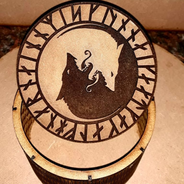 Laser cutting and engraving is so precise and fascinating in what all can be accomplished simply with focused light. We go from engraving your name onto a glass, making a round box to keep it in, to illuminated wall hangings.
