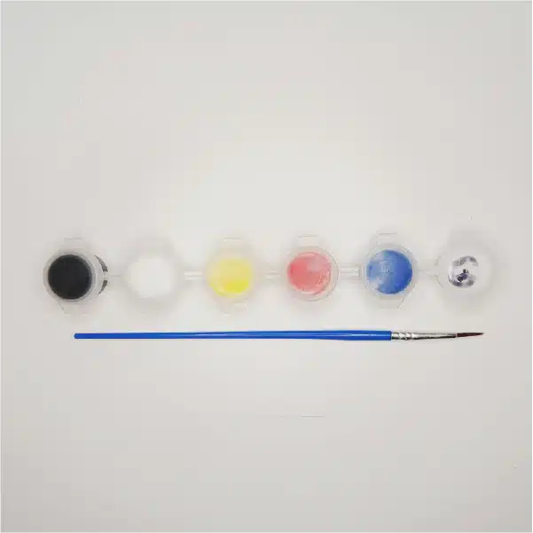 The Paint Me! Paint Set is the perfect introduction to your artistic and crafting adventures. Each set includes black, white, and the three primary colours—red, blue, and yellow—along with a pot of glue and a paint brush, making it easy to get started right away. All items are designed to pair perfectly with our Paint Me! kits.